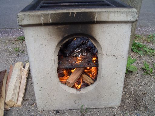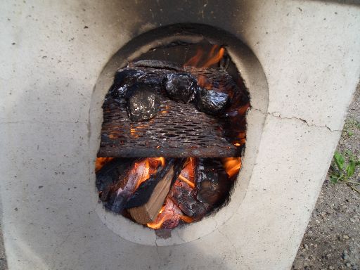 なかなか木炭に火が付かずにかなり、薪を燃やしましたw