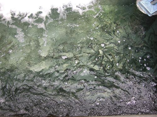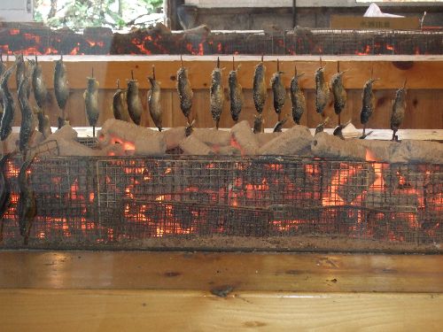 入り口には、ガラス張りで、炭火で鮎を焼いている所を見る事ができます♪