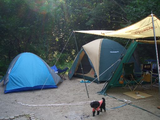 因みに、2ワンコは、長~~いロープをサイト中央にペグで固定され、サイト内を自由に動き回れるようにしてあります!