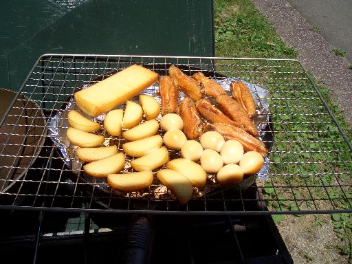 せっかく作った、即席ダンボール燻製機を壊して、網だけを取り出し、結局こうなりました↓。