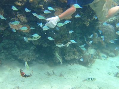 魚のほうから寄ってきて、あっという間に、お魚に囲まれてしまいます><