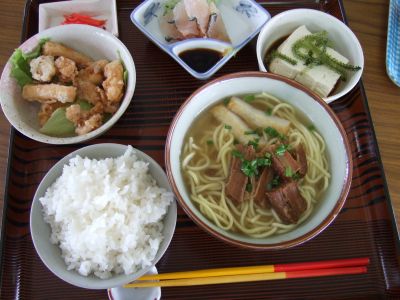 ちょうど、お昼時、ガイドのターザンさんお勧めの『キッチンみさき』という、海人(うみんちゅ)の人がやっているお店へ特別に連れて行ってもらい、時間を見計らって、お迎えにきてくれるとの事!