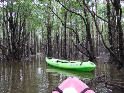 しばらく、広い海の部分でパドルの操作の練習をして、マングローブの生い茂る、川を上って行きます^^