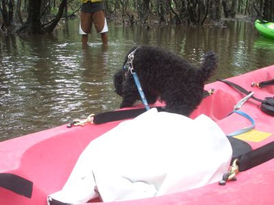 さて!、カヌーに乗っている間の、我が愛犬たちですが・・・!