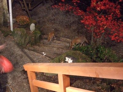 部屋に戻ってくつろいでいると、タヌキが来た!っと言うので降りて行ってみました!