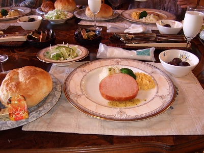 「大きな丸パンとクロワッサン」に「ハムステーキキウイソース」