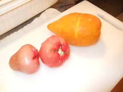 赤いのは、『レンブ』黄色いのは『カニステル』という南国フルーツです。