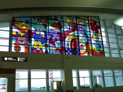 警備員さんに呼び止められ、『ワンちゃんも一緒に飛行機ご利用ですか?ここはペット駄目なんです!』と・・・・『石垣から来て、ここで一度わんこを出してもらったんです。夜の便で羽田まで行きますが?』と言うと『食品など扱っているのでペットは困るんです』などといわれ『今、ちょっと外でますんで!』と言うと、やっと警備員さんは去って行き、私達は、暑い中1時間位外で時間を潰し、でも暑さに負けて食品を扱っていない3Fなら良いだろうと、空港内に入ると、また違う警備員さんが寄って来るのを感じたので、慌てて外に出て、しばらく待ち、一番端から入り3Fへ向かい、ロビーの一番端の椅子に向かって歩いていると、後ろからまた違う警備員さんが来て、『ご出発ですか?』と・・・・・『そうですが、まだ少し時間があるんです。』と言うと・・・・やっぱり『ここはペット駄目なんです』と・・・・・・・なので『ペットと一緒に出かけるお客さんは皆さんどこで待ってるんですか?ペットといて良い場所はあるんですか?』と聞くと、『そういう場所は無いのですが、大体皆さん外で待ってます』みたいな事を言われ、『今まで外にいたんですけど暑くて中に戻ってきたんです』と言うと・・『ご搭乗まで、なるべくこのあたり(ロビーの一番端)にいてください』と言い残し、警備員さんは去っていきました。