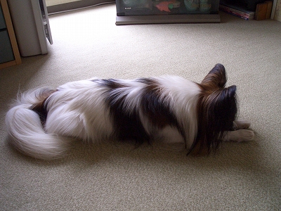 >よくカーペットの上ではこの寝方してるぅ~。
