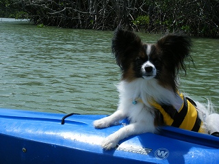 モカは、ジタバタ動き回ってましたが、小型犬が暴れたぐらいじゃ、カヌーは横転しないようです^^ただ、漕ぎづらいですけどw