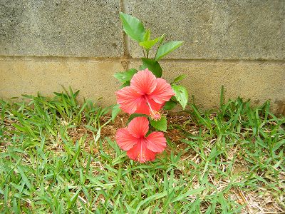 1週間くらい前に植えられた、マンションの周りのハイビスカス、チラホラと花が咲いてます♪