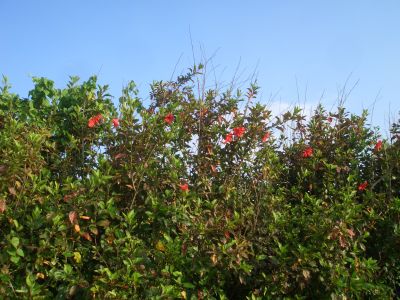 左は、赤いハイビスカスなのですが、大きく成長した木となり、高い場所にお花がついていました。