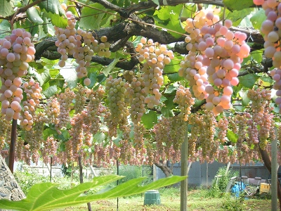 この他にも、種無しピオーネ、ピッテロビアンコ、藤稔、レディースフィンガー、甲斐路などなどいろんな種類のブドウが生ってました!