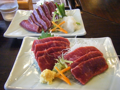 単品で、ワインビーフの刺身とタタキも注文!