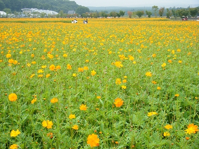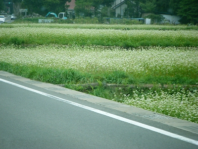 まず、車で花の都公園へ向かうと、一面、二面、三面、四面・・・の、そばの花が目に付き、