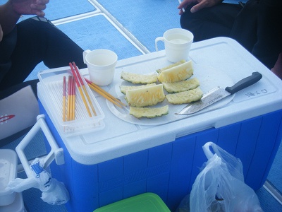 この最後の休憩中に、その日みた魚を説明してくれたり、