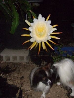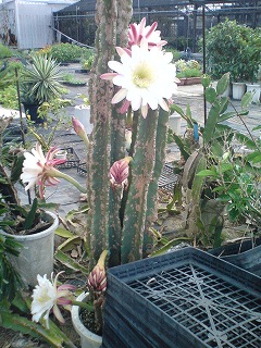 昨日の夕方、園芸屋のおっちゃんが、ドラゴンフルーツの花が5つ