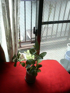 とっても見ずらいでしょうが、鉢の上の葉から、びょ~~~~んと伸びている枝