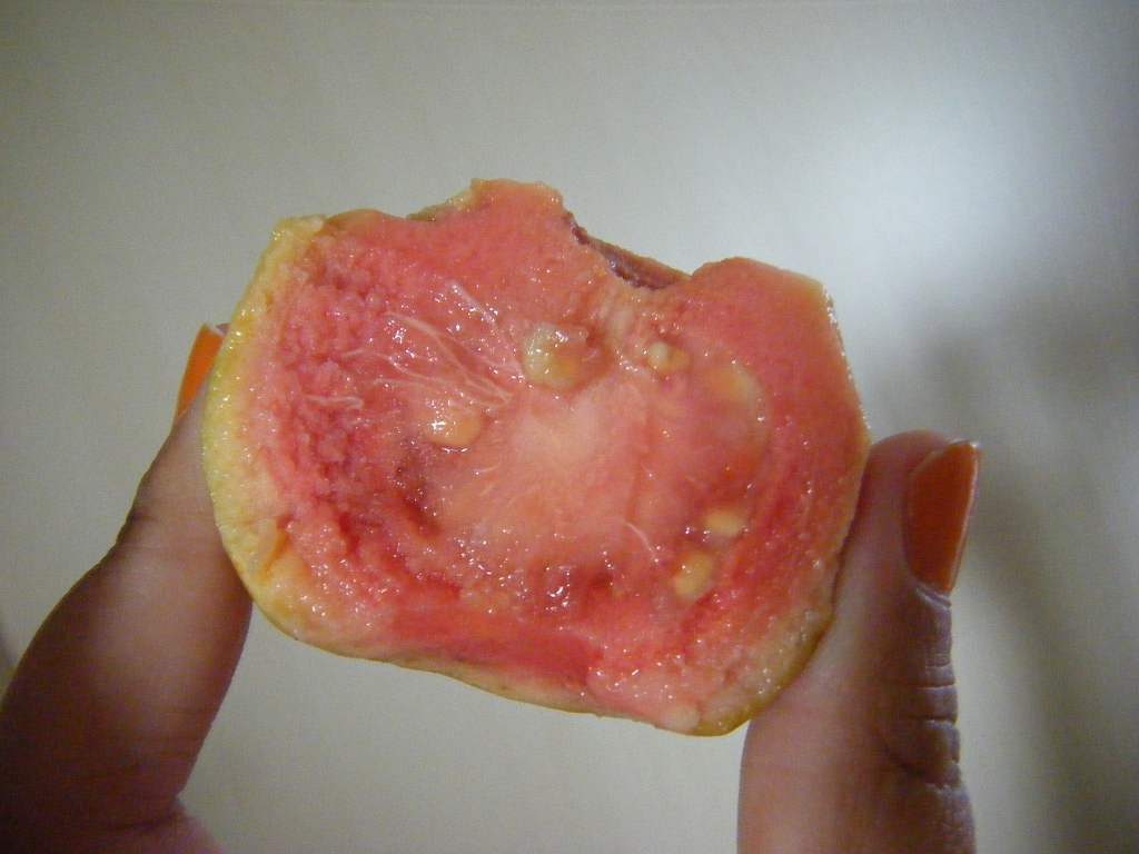 今度のグァバは、果肉がピンクです。