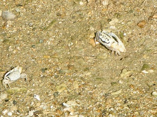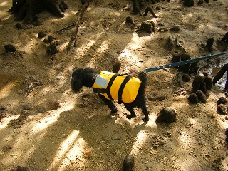 海の湾から川への入り口の浜に下りて、かる~くパドルの使い方、