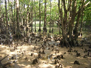 マングローブとは、海水と淡水が入り交じる沿岸に生育する