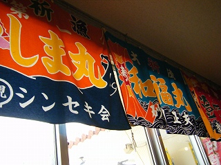 店内には大漁旗がたくさん!