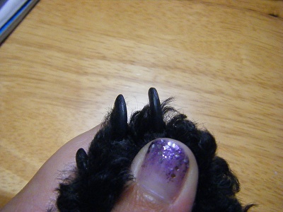 伸びてるでしょ!抱くと爪が食い込んで痛いんです!