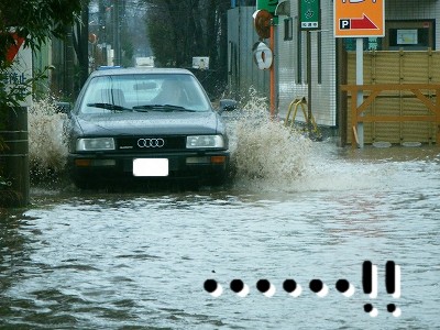 車が通るたびに、すっごい水しぶきが飛ぶので・・・・。