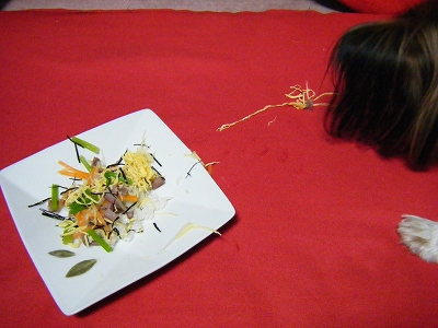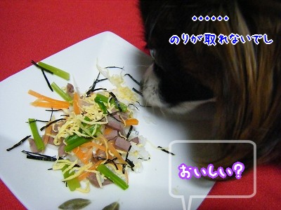 ひな祭りの明日そらはいないので、今日、ちらしごはんをあげたんです^^