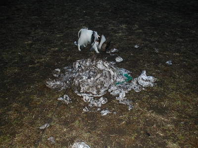 いつもの原っぱに、昨日は雪だるまであっただろう物のなれの果てを発見w