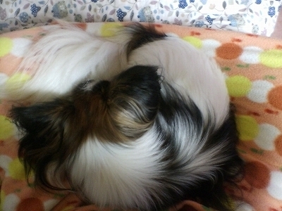 人の膝の上でクルリと丸まって落ち着いちゃったそら・・・。