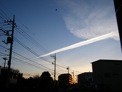 でも、真っ直ぐピーンと伸びた雲が朝日の覗いた青空に綺麗でした。