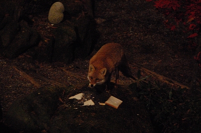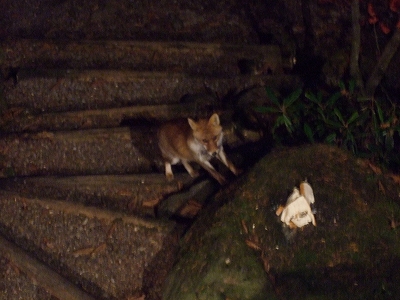 野生のキツネがお宿の玄関下に来ています。