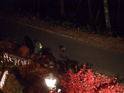 部屋に戻ってくつろいでいると、タヌキが来た!っと言うので降りて行ってみました!