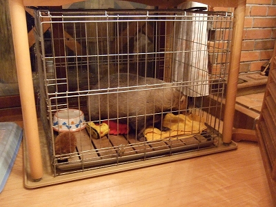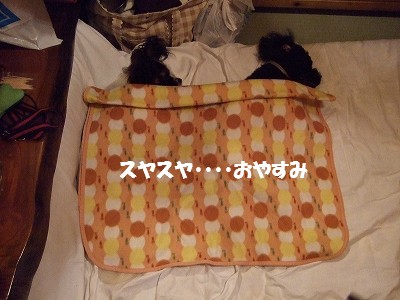 私のフリースのひざ掛けをかけてみました・・・・。
