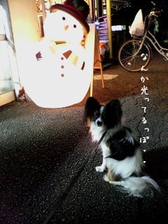近所の雑貨屋さん『meme』に行ったら、スノーマンが光ってました♪