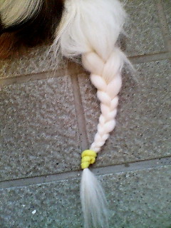 因みに、今日は三つ編みレンジャーな忠犬です。