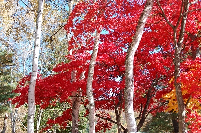 ↑白樺の木とモミジの赤がまた良い感じ!