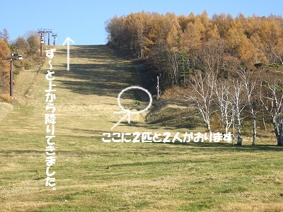 帰り、父とそらと叔父とモカは、ゴンドラに乗らないで、雪が降るとゲレンデになる道を歩いて降りることに・・。