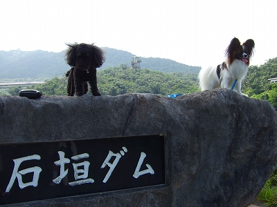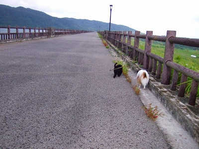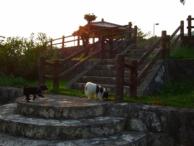 風が強かったので、2ワンとも耳をボンバーさせつつ