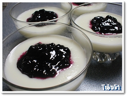 夕食後のデザートには、最近ハマっている、『ブラマンジェ』を、ブルーベリーソースで^^