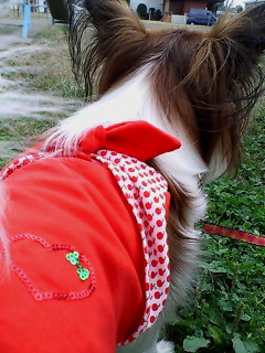 出かける前、ちょっと寒いから、洋服着せたのですが・・・