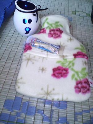 フリースに包まれたものは、「湯たんぽ」です!