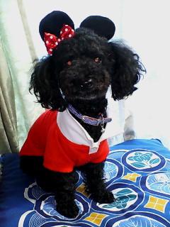 そらの小さくなった洋服を着せたら、なんとな~くミッキー&ミニーを思い出し、前回、自分用に買った、ミニーの付け耳(パッチん止め)があるのを思い出し、付けてみました~(*≧m≦*)ププッ