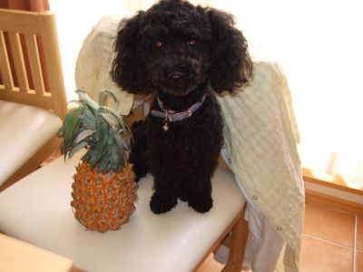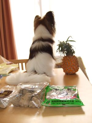 なんだか、哀愁漂う後姿をパインと一緒に見せてくれているわんこもおりますが・・メインは黒糖です!