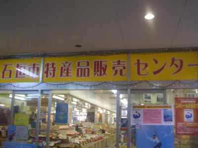 こちら、石垣産のおみやげ物屋さんです。ミンサー織りやお菓子、ウコンやクロレラ、シーサーに手作りサンシンセットなどなど、売り場も広くて、観光客の方は、結構寄るみたいです。