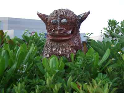 その前に・・・・、朝、母と叔母がお散歩に行って、シーサーと牛さんに出会いました。