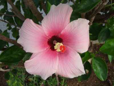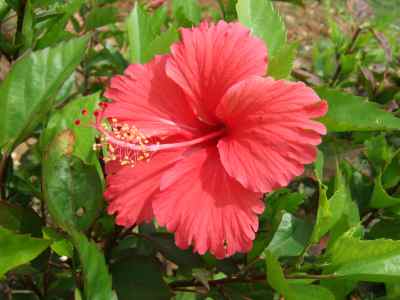 左は、赤いハイビスカスなのですが、大きく成長した木となり、高い場所にお花がついていました。