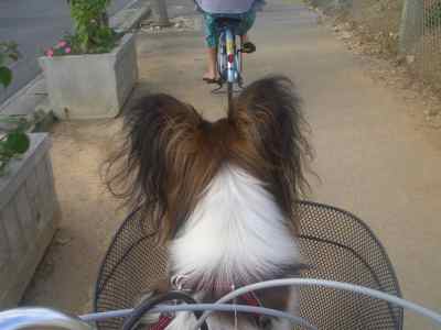 そらとモカを自転車のかごに入れていざ空港へ~♪