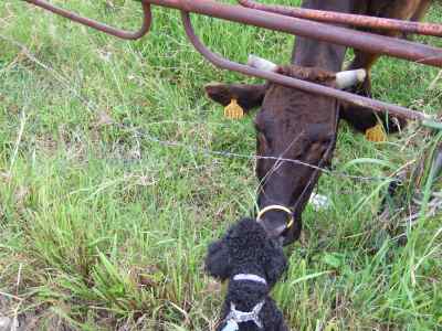 そして、モカくんも、牛さんにちゃんとご挨拶♪(黒いから、子牛と間違われてないかな??)
